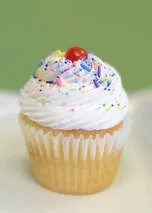 Still one of the most popular flavors around! A moist French Vanilla Cake, creamy whipped vanilla buttercream with sprinkles and a candy topper!